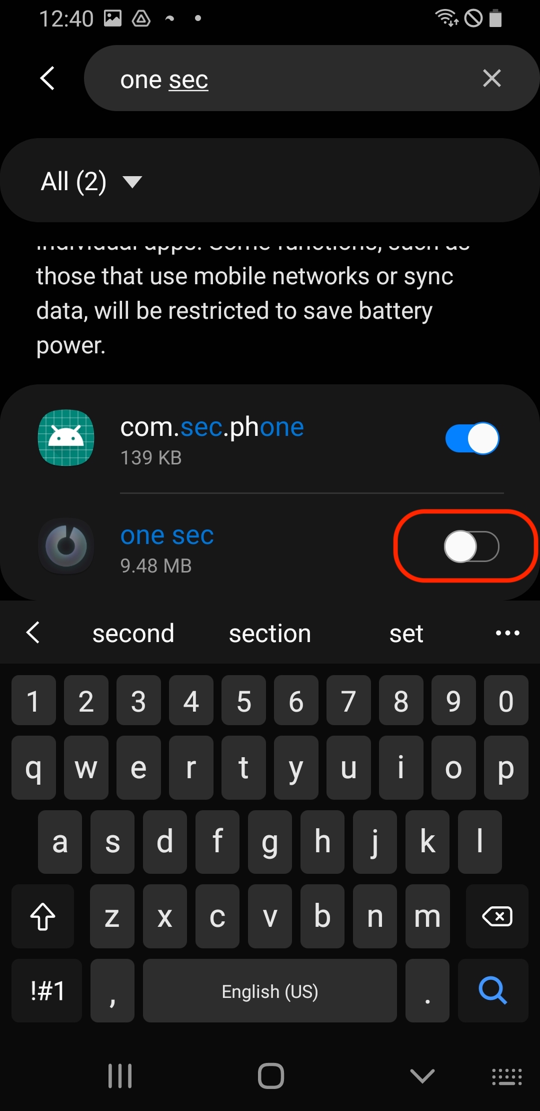 → search for one sec and make sure that the toggle is disabled.