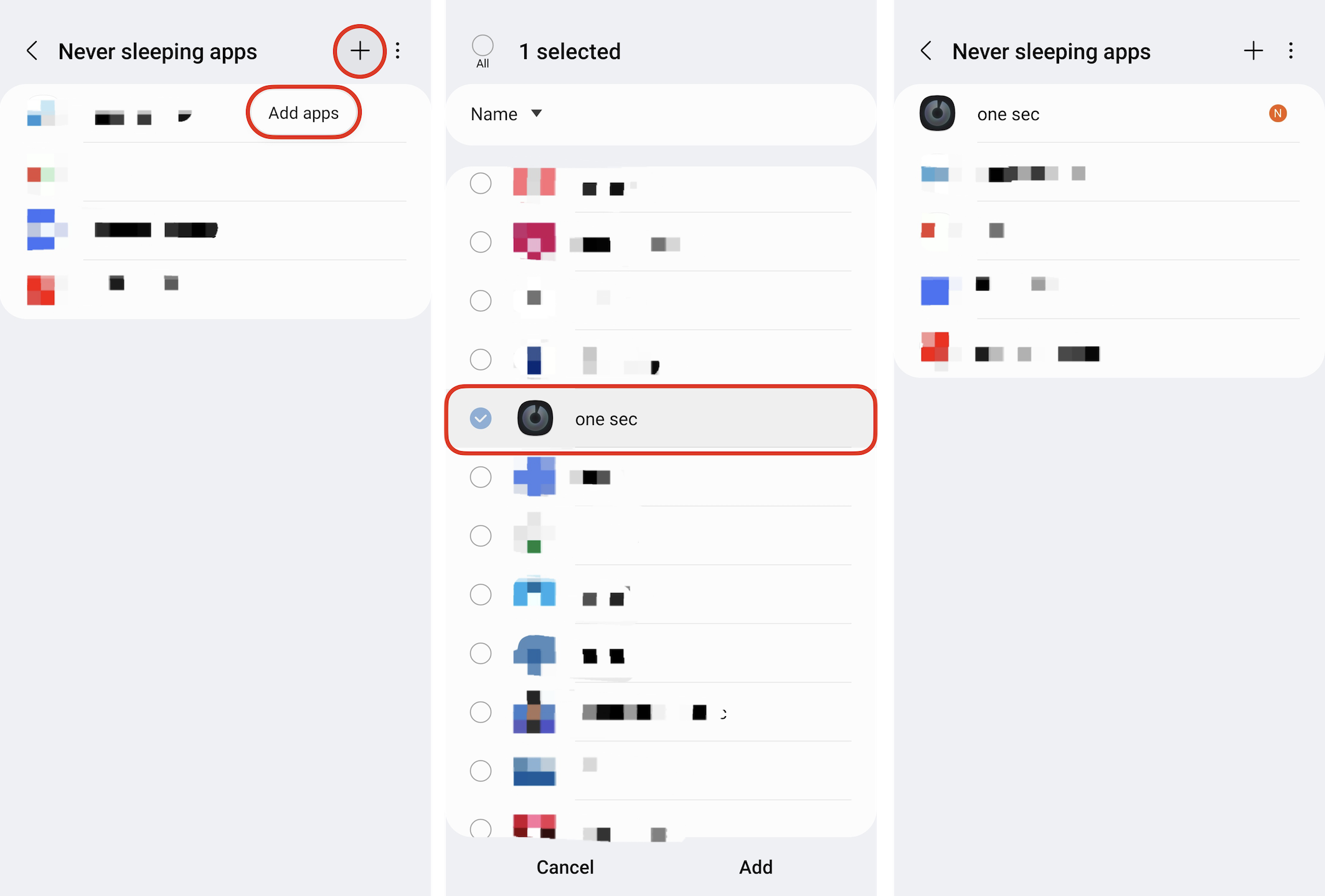 Go to your phone’s Settings → Battery and device care → Battery → Background usage limits → never sleeping apps → add one sec to the list.