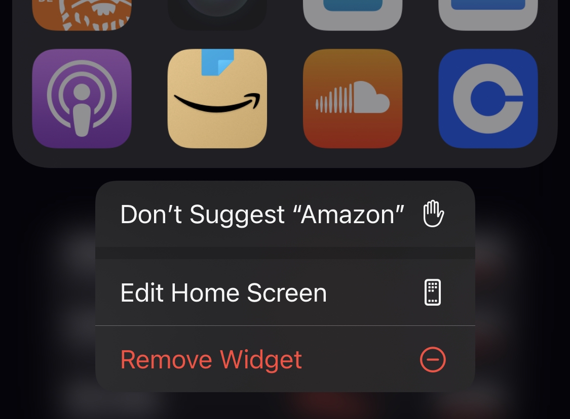 If you don’t want to update to iOS 16, the workaround is to long-press the app in the widget and select "don’t suggest" (that’s probably good anyway if you’re trying to use the app less):